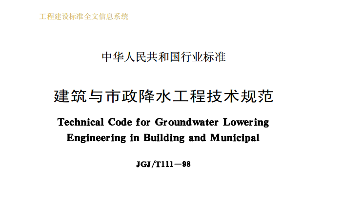JGJ111T-98建筑与市政降水工程技术规范