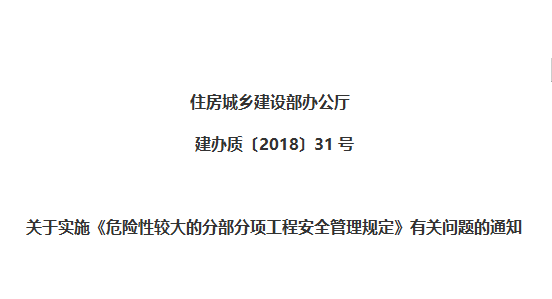 危险性较大的分部分项工程安全管理规定,建办质〔2018〕31号(原文)