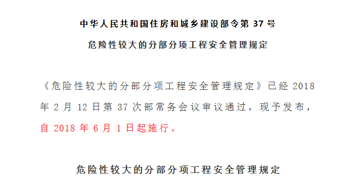 为贯彻实施《危险性较大的分部分项工程安全管理规定》(住房城乡建设部令第37号),进一步加强和规范房屋建筑和市政基础设施工程中危险性较大的分部分项工程(以下简称危大工程)安全管理,现将有关问题通知如文