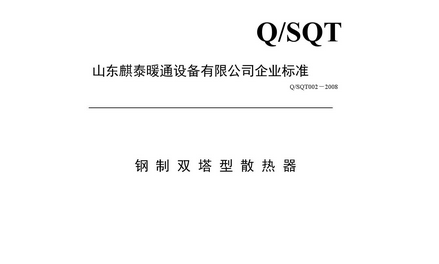 本标准规定了钢制双塔型散热器(以下简称散热器)的术语和定义、型号和标记、要求、试验方法、检验规则、标志、包装、运输与存储等。 本标准适用于工业、民用建筑中以热水为热媒的散热器。采暖系统应为闭式系统,非采暖季节应满水保养。热媒中溶解氧不得大于0.1mg/L,PH值(20℃)不得小于7,氯离子含量不大于100mg/l。散热器的最大工作压力为1.2MPa、试验压力1.8MPa。其他水质指标应符合GB1576的规定。