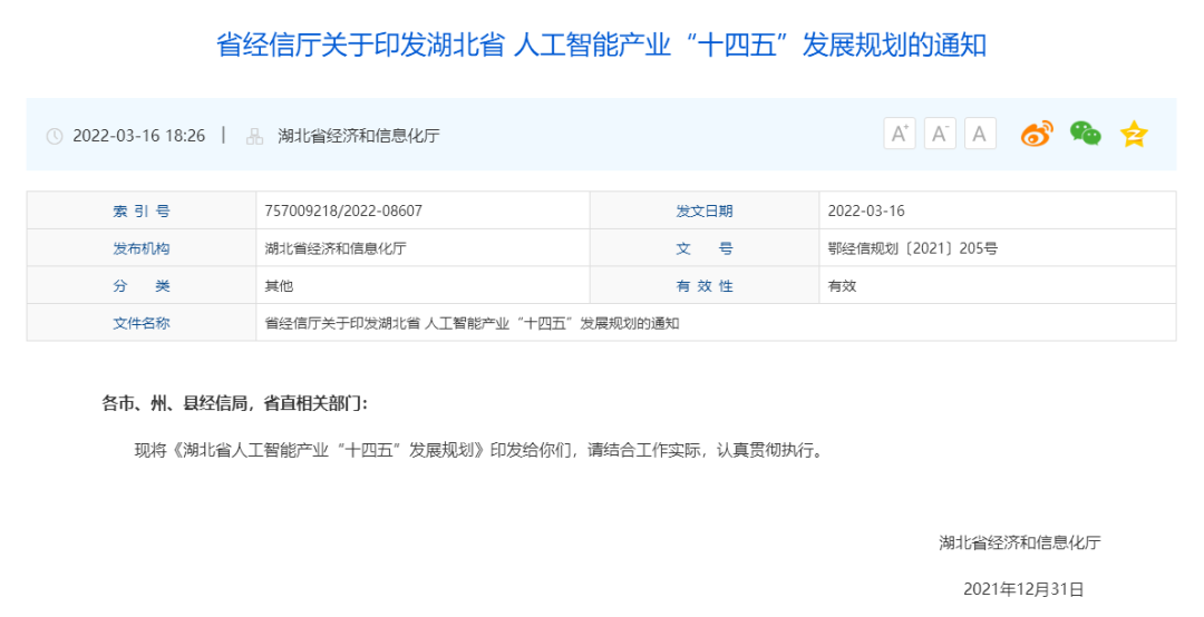 湖北省人工智能产业“十四五”发展规划