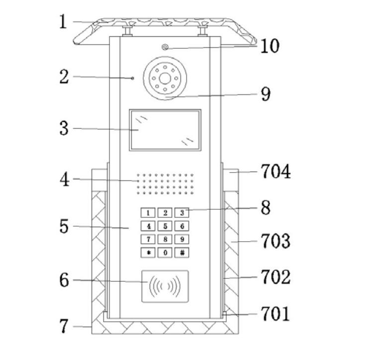 本实用新型公开了一种新型智能化楼宇门禁,包括话筒、显示屏、扬声器和主体,所述主体的顶端固定连接有防水板,所述主体底端的外侧设置有遮挡结构,所述遮挡结构包括有滑槽、滑块、挡盖和限位块,所述滑槽均设置在主体两侧的底端,所述滑槽的外侧活动连接有挡盖,且挡盖内部两侧的底端均固定连接有滑块,所述挡盖内部两侧的定顶端均固定连接有限位块,所述主体一端的顶部固定连接有照明灯。本实用新型通过在主体的内部均匀设置有预留孔,预留孔的内部均匀固定连接有加强筋,加强筋是由第一加强丝和第二加强丝捻和而成,增加了加强筋的强度,通过均匀设置的加强筋可以增加主体侧壁的强度,避免主体破损。