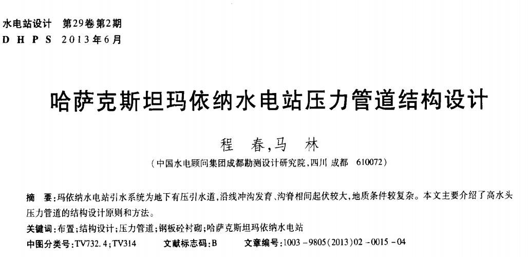 哈萨克斯坦玛依纳水电站压力管道结构设计