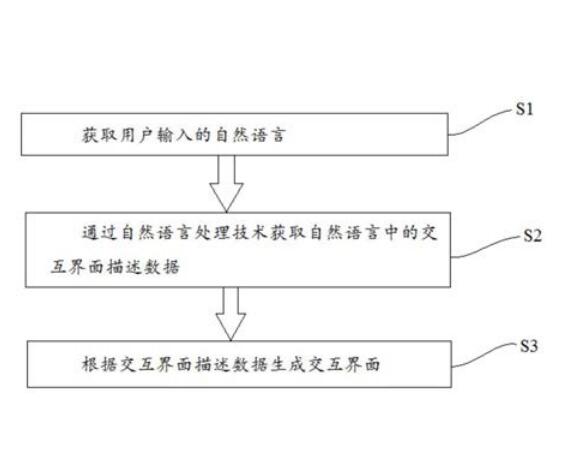 本发明涉及工业互联网领域,尤其涉及应用于工业互联网的交互界面生成方法及系统,该方法包括以下步骤:S1:获取用户输入的自然语言;S2:通过自然语言处理技术获取自然语言中的交互界面描述数据;S3:根据交互界面描述数据生成交互界面。本发明通过利用自然语言处理技术对自然语言进行分析处理,获取自然语言中的交互界面描述数据,并根据交互界面描述数据自动生成交互界面。