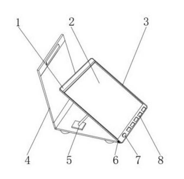 本实用新型公开了一种工业互联网信息展示用显示屏,包括显示器主体,所述显示器主体的内部设置有显示屏,所述显示器主体的外圈设置有保护外壳,所述显示器主体的一侧设置有充电口,所述显示器主体的前端设置有开关与控制面板,所述控制面板位于开关的一侧,所述显示器主体的下端设置有旋转架。本实用新型所述的一种工业互联网信息展示用显示屏,设有可折叠移动式保护机构与支撑定位调节机构,能够方便在进行展示的时候对装置进行移动,具有收合的功能,便于更好的对显示器进行保护,还可以方便对显示器的显示角度进行调节,便于人们更好的进行观察,增加装置的使用性能,带来更好的使用前景。