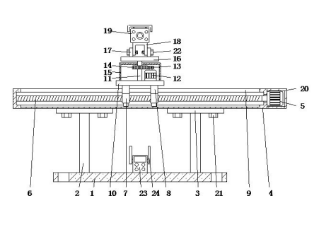 本实用新型公开了一种工业互联网用监控 装置,包括底板,所述底板顶部的两侧均固定连 接有固定杆,所述固定杆的顶端固定连接有固定 板,所述固定板的顶部固定连接有驱动箱,所述 驱动箱的右侧固定连接有第一电机,所述第一电 机的转轴贯穿至驱动箱的内腔并固定连接有螺 纹杆,所述螺纹杆的左端与驱动箱的内壁活动连 接,所述螺纹杆的表面螺纹套设有螺纹套,所述 螺纹套的顶部固定连接有连接块。本实用新型具 备可对监控设备进行左右移动及旋转的优点,解 决了现有的工业互联网用监控装置,在使用过程 中,由于结构单一,无法根据实际使用情况对监 控设备进行左右移动及旋转,从而影响监控设备 的监控效果,且降低了监控装置适用性的问题。