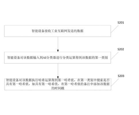 本公开提供一种基于FE工业互联网的数据 分类方法及相关产品,该方法包括:智能设备接 收工业互联网发送的数据;智能设备对该数据输 入到AI分类器进行分类运算得到该数据的第一 类别;智能设备对该数据执行哈希运算得到第一 哈希值,在第一类别中搜索是否具有第一哈希 值,如具有第一哈希值,在第一哈希值的备注中 添加该数据的时间戳。本申请提供的技术方案具 有节省存储空间的优点。