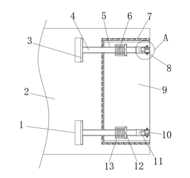 本实用新型涉及电力监测技术领域,具体揭示了一种楼宇电力系统智能监测光伏报警设备,包括墙体,墙体正面的中央开设有凹槽,所述墙体的凹槽内壁固定连接有保护壳,所述墙体凹槽内壁背面的四个角部均开设有纵向分布的卡合凹槽,所述保护壳的内部滑动连接有报警设备,所述报警设备正面的四个角部均开设有纵向贯穿报警设备以及保护壳的转动凹槽,四个所述转动凹槽均与卡合凹槽相对应,所述转动凹槽内壁的前侧开设有呈环形分布的凹槽,通过设置的卡合杆与卡合凹槽相卡合,搭配滑动凹槽以及转动杆使用,便于墙体与报警设备之间的连接,从而便于对报警设备进行维修或更换,便于工作人员工作的进行。