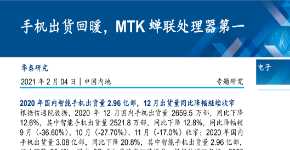 2020 年国内智能手机出货量 2.96 亿部,12 月出货量同比降幅继续收窄根据信通院数据,2020 年 12 月国内手机出货量 2659.5 万部,同比下降12.6%,其中智能手机出货量 2521.8 万部。