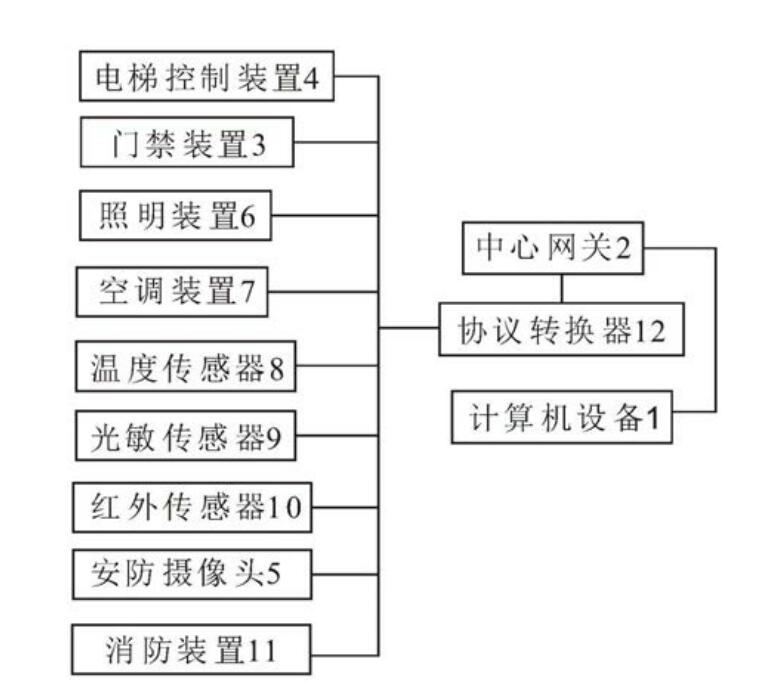 本实用新型提供了一种楼宇设施智能联动系统,涉及电器自动化领域,包括:计算机设备,连接中心网关;中心网关,提供网络接口以供楼宇中的电气设备进行组网;门禁装置,连接至中心网关;电梯控制装置,接入中心网关,根据电梯控制信号控制电梯系统中电梯的运行;安防摄像头,连接至中心网关将视频信息发送至计算机设备;照明装置,连接至中心网关,接收计算机设备的照明控制信号以控制照明开关;空调装置,连接至中心网关,接收计算机设备的空调控制信号以控制空调的运行状态;温度传感器,光敏传感器和红外传感器接入中心网关向计算机设备提供传感信号。本实用新型提供的楼宇设施智能联动系统能够提升用户体验,优化设备运行与管理。