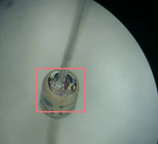 看下部锯齿状外封层、应该是玻管封闭时引线镀层熔融未除去造成的、理应外封层之前返工、外来物是个缺陷 这个就是引脚上的镀层沾污在玻封本体上。你指的外封层是指?在玻璃与引脚密封之后还有其它工序吗?