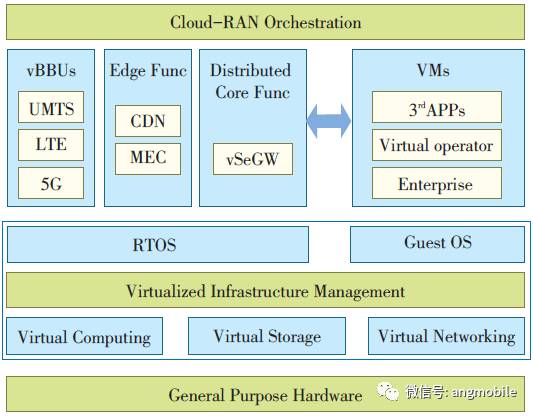 采用通用硬件平台,通过虚拟化技术实现软硬件解耦,使得网络具有灵活的可扩展性、开放性和演进能力。通过将网络功能虚拟化,实现对时域、频域、空域、功率域等无线资源的灵活切片与共享,形成虚拟移动网络,最大化空口资源利用率的同时,基于定制化需求提供保障带宽,支持物联网、虚拟运营商等灵活动态低成本的网络部署要求。