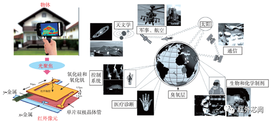 在回顾热探测器的工作原理、材料体系和典型应用的基础上,着重介绍了利用光学天线调控热探测器像元的光谱响应、实现多光谱窄带探测的技术路线。首次提出了将基于光学天线的多光谱窄带探测器用于非色散红外光谱法(NDIR)进行多种气体传感的应用场景,以摆脱对窄带滤光片的依赖;针对8种典型的危害性气体(H2S、CH4、CO2、CO、NO、CH2O、NO2、SO2)的特征吸收波长构建了多光谱窄带探测器阵列,并采用NDIR进行了单一气体检测,由实验测得的气体检测下限与商用NDIR 气体传感器的检测下限相当;发展了从多个窄带探测器的输出信号组合反推混合气体中各组分浓度的数学模型,并进行了NDIR多组分混合气体实验验证。结合商业案例,分析了超构材料多光谱窄带探测技术在固体、液体、气体等形态的物质成分分析中的实用价值,展望了其在国防军事、工业化工、食品安全及污染检测等领域中的应用前景。