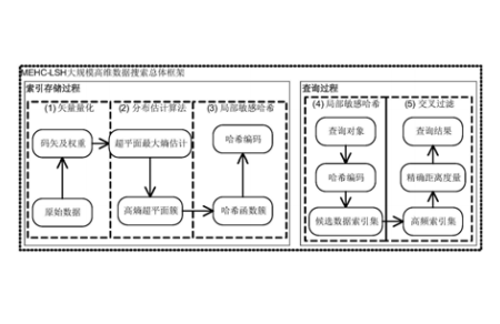 本发明公开基于高熵超平面簇的大规模数 据局部敏感哈希搜索方法,分为两个阶段:(1 )索 引构建:首先 ,采用矢量量化方法对数据分布进 行估测 ,并在量化信息基础上构建一组分割数据 的候选超平面;其次,利用分布估计算法根据最 大熵原则对候选超平面进行筛选,得到多组高熵 超平面簇;最后,利用高熵超平面簇作为投影矢 量 ,为分布在超平面两侧的数据点赋予不同的哈 希编码,形成多组高质量的数据索引字典;(2)查 询阶段:首先,计算查询点在所有哈希字典中的 编码映射;其次,根据查询点的哈希编码,找到具 有相同哈希编码的数据索引集;最后,对返回的 索引集过滤得到质量最高的查询结果。本发明具 有较高的索引编码效率 ,相同编码长度下具有更 高精确度和召回率。