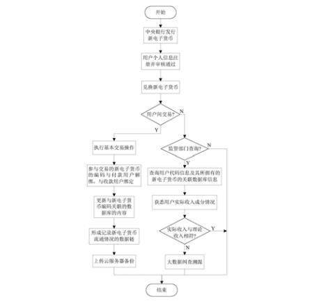 一种基于大数据的编码式电子货币支付款 系统,包括用户终端、银行服务器和云服务器,用 户终端主要是辅助编码式电子货币交易的手机 APP系统,可以完成兑换及转账的基本功能,在使 用前须进行用户注册并由监管部门审核通过,取 得包含个人信息的用户代码。交易完成后,付款 账户减少相应的新电子货币,收款账户增加相应 的新电子货币,且增加的新电子货币与付款人的 用户代码解除绑定,与收款人的用户代码绑定。 所述银行服务器用于数据解析,辅助建立通信关 系,并在交易或兑换完成后,更新与新电子货币 编码相关联的数据库中的数据信息,并上传至云 服务器进行备份,以备监管部门查询,对于规范 电子转账行为、净化网络交易环境、打击金融犯 罪等具有重要意义。