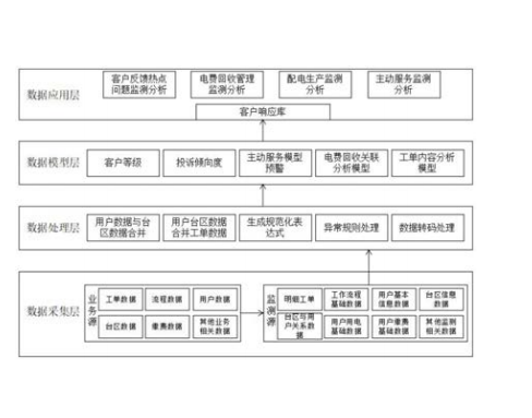 本发明提供一种基于大数据挖掘的客户反 馈热点问题分析系统,其特征在于:包括数据采 集层、数据处理层、数据模型层、数据应用层,所 述数据采集层将明细数据及基础数据传输至数 据处理层,所述数据处理层将数据处理后传输至 数据模型层,所述数据模型层根据要求做模型处 理,并将处理后的数据传输至数据应用层,所述 数据应用层包括有客户响应库,由所述数据模型 层传输至数据应用层的数据在数据应用层建立 客户响应库,所述数据采集层包括有业务源、监 测源,所述业务源收集数据为分析提供数据基 础,所述监测源从业务源接入业务数据。通过本 发明,以解决现有技术存在的对客户反馈的问题 收集分析反馈不及时的问题。