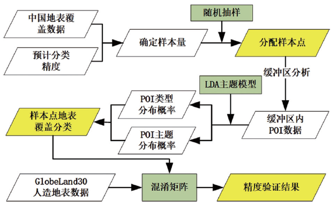 GlobeLand30数据已被广泛应用于生态、环境、气候等研究领域,对其进行精度验证是保证GlobeLand30产品推广应用的首要前提。本文提出了一种基于众源地理数据的GlobeLand30人造地表精度验证方法:首先利用随机抽样的方法布设样本点,其次应用LDA (latent Dirichlet allocation)主题模型计算众源数据文档的地表覆盖主题,最后通过构建样本点与GlobeLand30数据产品之间的混淆矩阵,以实现人造地表数据的精度验证。研究区域为我国27个省级行政区,众源地理数据选用POI数据,对本文提出的方法进行了实例验证。结果表明:2000年和2010年的人造地表总体精度分别为87.63%和88.81%,这与GlobeLand30人造地表第三方评价精度86.97%相近,验证了本文方法的有效性。