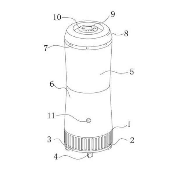 本发明公开了一种用于楼宇智能空气净化器,包括进风箱,所述进风箱为圆柱形中空结构,所述进风箱的外表面等距离开有若干个进风口,所述进风箱下端固定连接有底板,所述底板的下端活动连接有四个万向轮,所述进风箱上端固定连接有一级净化箱,所述一级净化箱的外表面下部设置有状态显示灯,所述一级净化箱内设置有净化芯,所述一级净化箱上端固定连接有二级净化箱,所述一级净化箱和二级净化箱之间设置有一号通风板,所述二级净化箱上端固定连接有二号通风板,所述二级净化箱上端固定连接有防护顶盖,所述防护顶盖内固定安装有设备控制器。本发明的一种用于楼宇智能空气净化器,对空气进行多级过滤净化处理,净化效果好,且使用方便。