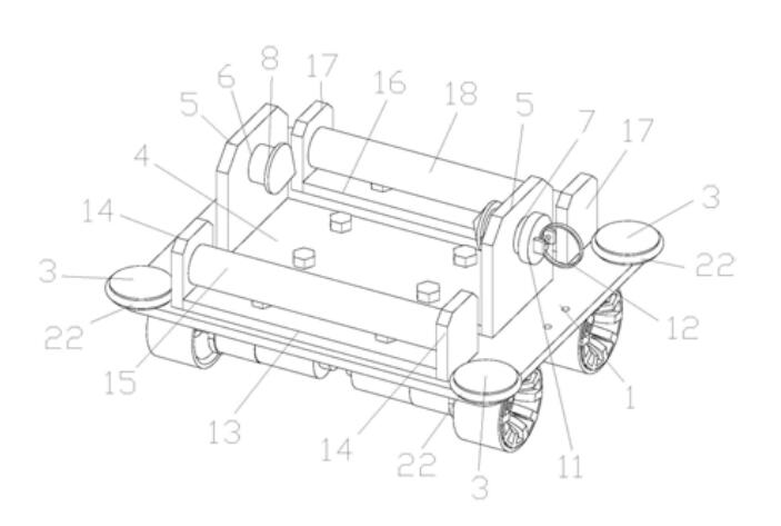 一种线槽导线车,属于属于智能楼宇设备技术领域;通过在底板的四个边角处设置导轮孔,并在导轮孔中设置对应设有导向轮,通过设置导向轮,当导线车在狭窄的桥架箱中行走时,导向轮能减少导向车与桥架箱的摩擦,使导向车能更加平稳的在桥架箱中移动,在锥形拉杆孔中滑配锥形拉杆,并在锥形拉杆上套设有弹簧,通过设置在锥形拉杆上套设弹簧,当拉动拉环使锥形拉杆向右移动后,松开拉环锥形拉杆会利用弹簧的弹力向左移动,回到原始位置,锥形拉杆的右端设有挡板,挡板上设有拉环,当需要将线卷放入导线车时,通过向右拉动拉环,将锥形拉杆向右拉出,便可将线卷放入导线车中,锥形顶杆与锥形拉杆的一头为圆锥,能起到自动对心的作用。