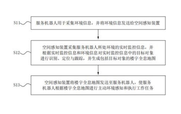 本发明提供了一种智能空间服务方法和系统,应用于空间感知装置和服务机器人之间,包括;服务机器人用于采集环境信息,并将环境信息发送给空间感知装置;空间感知装置采集服务机器人所处环境的实时监控信息,并根据实时监控信息和环境信息对实时监控信息中的目标对象进行识别、定位与跟踪,并生成包括目标对象的楼宇全息地图;空间感知装置将楼宇全息地图发送至服务机器人,使服务机器人根据楼宇全息地图进行主动环境感知和执行工作任务。本发明的智能空间服务方法和系统,能够为服务机器人提供定位辅助、避障辅助和安全辅助等能力,使服务机器人能够主动环境感知和准确的执行服务。