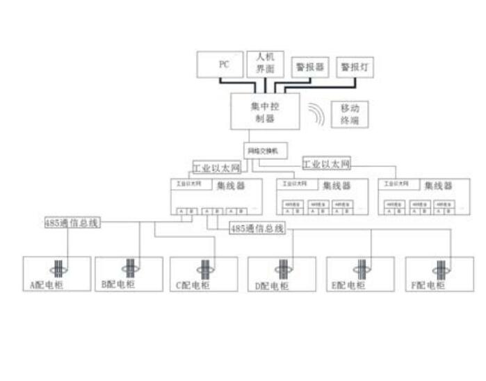 本实用新型专利属于配电柜智能管理、楼宇自动化应用技术领域,具体涉及一种分布式配电集控系统,包括控制层、中间层、基础层和通信网络,配电柜内设有检测元件,包括智能电表、感烟火灾探测器、漏电探测器、温度探头;所述配电柜安装有控制元件,包括轴流风机、继电器和报警装置;与现有技术相比,本实用新型改变了现有技术配电柜内多个监控系统独立运行的局面,避免了配电柜内安装空间紧张、通讯系统多相互干扰、多个独立系统管理维护难,重复性通讯布线等一系列的问题。
