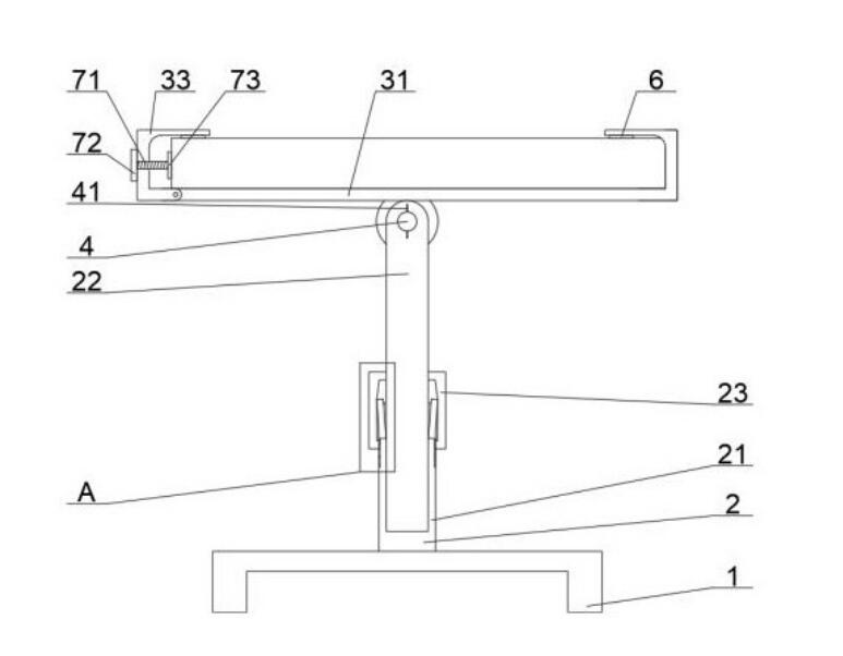 本实用新型公开了一种楼宇智能显控终端用固定支架,一种楼宇智能显控终端用固定支架,包括底座,底座的上侧壁面固定连接有调节结构,调节结构包括主杆,主杆的内侧壁面滑动连接有副杆,主杆的外侧壁面螺接有套筒,副杆的上侧壁面固定连接有弹簧圈,副杆远离底座一端转动连接有显示结构,显示结构包括主框架、连轴和副框架,副框架转动连接于主框架的内侧壁面,连轴转动连接于副杆的内侧壁面,可使用调节结构对显示结构进行高度的调整,得以达到更好的使用高度,同时还可以通过显示结构对观测的角度进行调整,调整后的高度以及角度均可进行固定,得以提高工作效率。