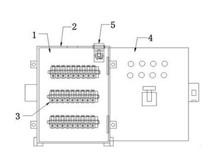 本实用新型公开了一种楼宇智能化设备的控制柜,其特征主要在于:主体包括楼宇设备控制柜本体、控制柜保护罩壳、控制柜接线架、控制柜手动操作面板、控制柜主动降温装置,楼宇设备控制柜本体外侧设置有控制柜保护罩壳,控制柜保护罩壳内侧设置有控制柜接线架,控制柜保护罩壳顶端设置有控制柜主动降温装置,控制柜保护罩壳外侧面设置有控制柜手动操作面板,本装置结构简单、性能安全可靠、安装使用便捷、具备主动风冷降温,且能够极大地避免漏电的情况发生。