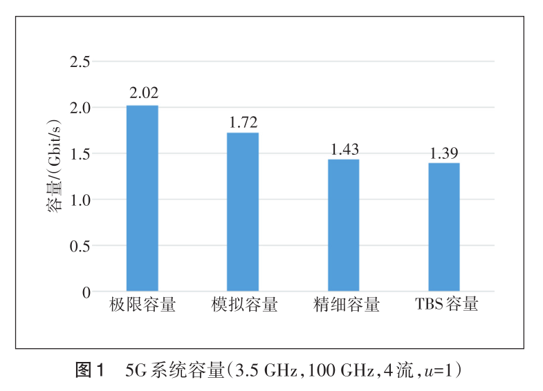 给定5G不同的帧配置,分析不同配置对系统容量的影响。在典型配置场景下,分析了5G系统的频谱效率、控制信道和信号的开销,以及调度周期内传输的符号数,在此基础上,分别测算了极限条件、模拟条件的容量和精细容量。进一步地,为了使结果更可靠,根据TBS协议规则,给出了TBS容量的计算方式和流程。结合不同的容量结果进行了对比分析,对即将到来的5G的组网及优化提出了相关指导意见。