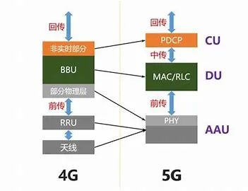 为了满足大带宽、低延时、广覆盖的要求,5G无线接入网(RAN)架构从4G的基带处理单元(BBU)、射频拉远单元(RRU)两级结构演进为集中单元(CU)、分布单元(DU)和有源天线单元(AAU)三级结构,相应的承载网络架构也由前传和回传网络分解为前传、中传和回传网络。5G的新型业务特性和更高指标要求对前传、中传和回传光模块的速率也提出了更高要求。