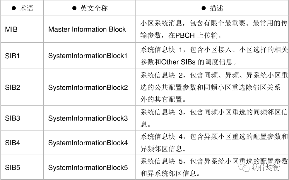 MIB 承载在 PBCH 上, 发送周期为 80ms, 在 80ms 内重复发送. MIB 信息中包括:系统帧号, SIB1 和公共广播消息的子载波间隔, SSB 的 RE 级偏移, CORSET0 的资源配置. 在初始接入时 UE 通过接收 SSB 进行小区搜索, 和小区实现时间和频率的同步之后, 才能接入无线网络. 在邻区测量时, UE 通过下行同步之后, 才能解码出SIB1信息, 解码出邻区的 NCGI。SSB 通常以 4 个连续的符号发送, PBCH 包含 PBCH DMRS信号。