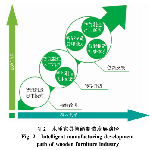 在国内加快建立新发展格局和世界制造业发展格局面临重大调整的当下,智能制造是培育我国新的经济增长动力、抢占新一轮产业竞争制高点的主攻方向。以木质家具制造业为代表的传统产业正面临转型升级的机遇与挑战。本研究结合智能制造对木质家具制造企业的转型要求,梳理了包含基础信息技术、新型制造技术、发展前沿技术等在内的家具智能制造赋能技术,并阐述了其在家具制造业的应用场景。为系统解决传统木质家具企业智能制造升级需要解决的编码困难、信息孤岛、排产难度大、生产调度慢等瓶颈问题,笔者提炼了基础保障、智能制造关键技术和行业应用等三部分构成的木质家具行业智能制造体系结构。最后,立足我国家具行业实际情况,从思维模式、人才培养、技术创新、管理能力、标准体系和产业联盟等要素解析了家具制造企业实现智能制造的发展路径,以期为助力木质家具制造企业成功实现智能制造转型、重建中国家具制造业新优势提供理论借鉴和参考。