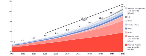 移动互联网和物联网的迅猛发展驱动数据流量的重心从有线向无线网络加快转移,促进了无线市场的蓬勃发展。随着4.5G和5G技术的发展,蜂窝移动通信技术版图和应用场景不断扩张,包括增强移动宽带(eMBB)、海量机器类通信(mMTC)和超高可靠低时延通信(URLLC)三大场景。同时,以Wi-Fi为代表的无线局域网(WLAN)技术随着移动互联网的发展,已经成为人们日常生活必不可少的无线接入方式,也在向物联网、车联网等领域不断延伸。