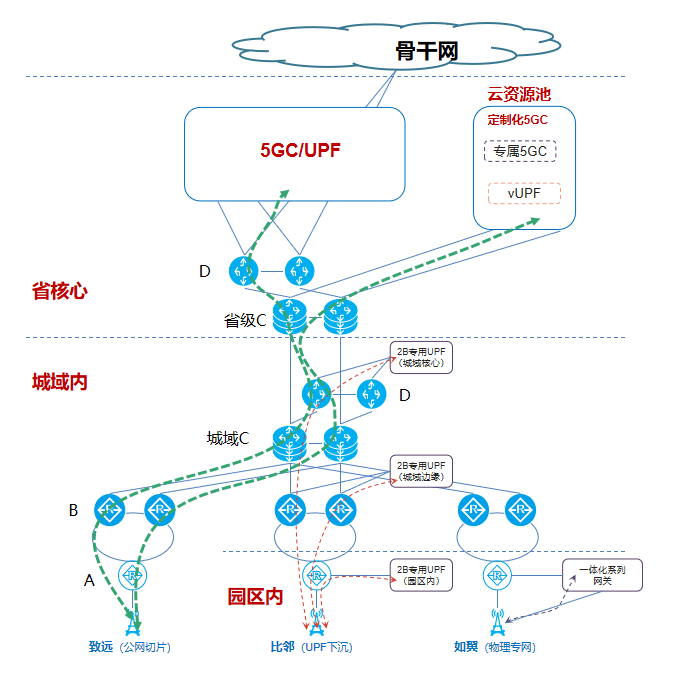 5G和云时代的到来,云网融合是网络演进发展的大趋势,5G定制网能够充分发挥云网融合优势,满足各类场景下5G 2B业务承载。首先通过介绍5G承载网总体组网架构,然后分析了5G承载网引入的FlexE+SRv6+EVPN等关键新技术特性,最后探讨了针对2B用户的5G 2B各业务场景的部署方案及现网验证。
