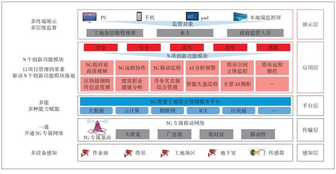 随着 5G 和 MEC 技术的快速发展,利用新技术打造智慧工地系统已成为建筑行业提升项目管理水平的重要手段。探索信息化管理手段在工地管理中的新应用,通过新型智慧化解决方案,可实现工地管理中人、机、料、法、环等要素提升,提高智慧化管理水平,大大降低安全事故态势。主要探究如何运用 5G、MEC 和视频等新兴信息技术,结合工地痛点需求,探索新型智慧工地的应用,为工地安全保驾护航。