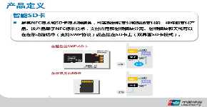 智能SD卡是将NFC技术和SD卡技术相结合,可实现远程支付和现场支付的一种移动支付产品。该产品基于NFC标准技术,支付应用和射频模块分离。射频模块和天线可以在在移动终端中(支持SWP协议)或直接在SD卡上(双界面SD卡模式)。