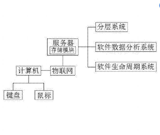 本发明公开了一种计算机软件技术开发调试系统,包括服务器、物联网和计算机,所述计算机通过物联网连接于服务器,所述服务器包括存储模块,所述服务器连接有分层系统、软件数据分析系统和软件生命周期系统,所述软件生命周期系统包括软件定义模块、软件开发模块和运行维护模块,所述分层系统包括客户端Web层、业务层、集成层和资源层,本发明通过分层系统、软件数据分析系统和软件生命周期系统对软件开发设计,在信息的准确程度上得到了有效的提升,并为所开展的程序设计创造一个有利的环境,提高了计算机软件开发的效率;通过功能模块的引入,确保了计算机软件功能实现的速度,对信息数据的使用形式也更合理。