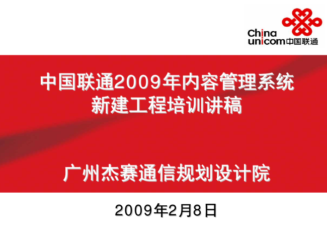 中国联通X教材年内容管理系统新建工程培训讲稿