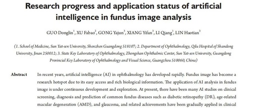 近年来,眼科人工智能(artificial intelligence,AI)迅猛发展,眼底影像因易获取及其丰富的生物信息成为研究热点,眼底影像的AI分析在眼底影像分析中的应用不断深入、拓展。目前,关于糖尿病性视网膜病变(diabetic retinopathy,DR)、年龄相关性黄斑变性(age-related maculardegeneration,AMD)、青光眼等常见眼底疾病的临床筛查、诊断和预测已有较多AI研究,相关成果已逐步应用于临床实践。除眼科疾病以外,探究眼底特征与全身各种疾病之间的关系并据此研发AI诊断系统已经成为当下的又一热门研究领域。AI应用于眼底影像分析将改善医疗资源紧缺、诊断效率低下的情况,为多种疾病的筛查和诊断开辟“新赛道”。未来眼底影像AI分析的研究应着眼于多种眼底疾病的智能性、全面性诊断,对复杂性疾病进行综合性的辅助诊断;注重整合标准化、高质量的数据资源,提高算法性能、设计贴合临床的研究方案。
