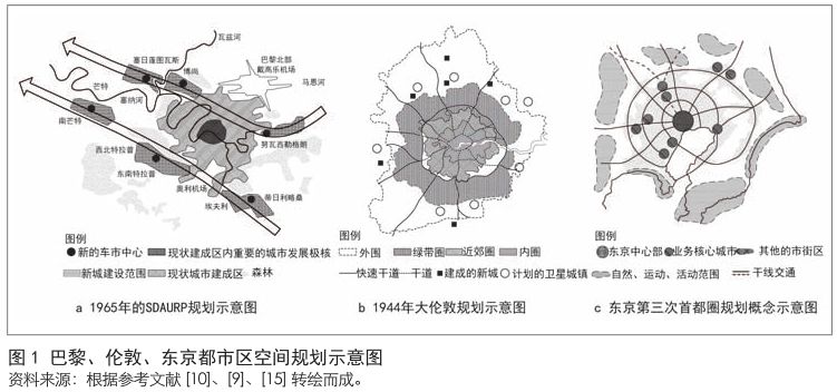 早在1898年,英国学者霍华德提出的“田园城市”思想就是为了应对英国快速城市化过程中出现的“城市病”。他设想,在中心城市(规模为58 000人)周围建设若干个“田园城市”( 规模为 32 000 人 ),形成一个城市组群,来疏散过分拥挤的城市人口。20世纪 20 年代,温恩在“田园城市”思想的基础上提出了卫星城市理论,即在现有大城市周边建设围绕着中心城市、分担其部分功能的新城 ( 卫星城 )。温恩在其主持完成的伦敦区域规划中便运用了该理论。1917年,芬兰建筑师沙里宁在着手大赫尔辛基规划方案时提出了“有机疏散”理论,主张在赫尔辛基附近建设一些可供一部分居民就业的“半独立”城镇,以缓解与中心城区的通勤矛盾。1944 年,阿伯克龙比在完成的大伦敦规划中坚持了对大城市进行疏解的思想,在伦敦城市建成区周围规划设置了宽十多公里的绿化带,在绿化带外围建设卫星城,卫星城内设必要的生活服务设施和一定的工业,独立性较强。此后,单纯居住功能的卫星城开始向复合功能的新城演化,越来越强调其自身的独立性,规模也越来越大。