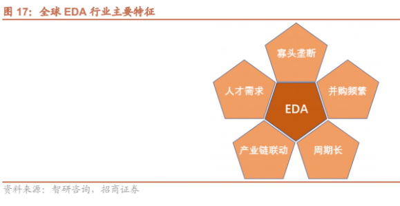 全球 EDA 软件行业属于技术、资金、人才密集型行业。由于研发投产周期长,导致行业人才需求以及资金消耗成为行业发展的关键因素,也体现出 EDA 软件行业的主要特征。EDA 三巨头在过去的30多年里,经过了超过200次的并购,形成了现如今行业内的寡头垄断地位,其中 Synopsys 的并购次数更是高达80次。