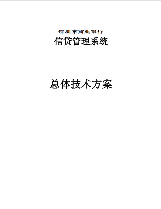 “深圳市商业银行信贷管理系统”总体技术方案是我们针对深圳 市商业银行信贷业务和金融电子化建设情况,从系统总体体系结构、 应用系统技术实现、系统总体功能及系统与其它系统接口等方面进行 设计。