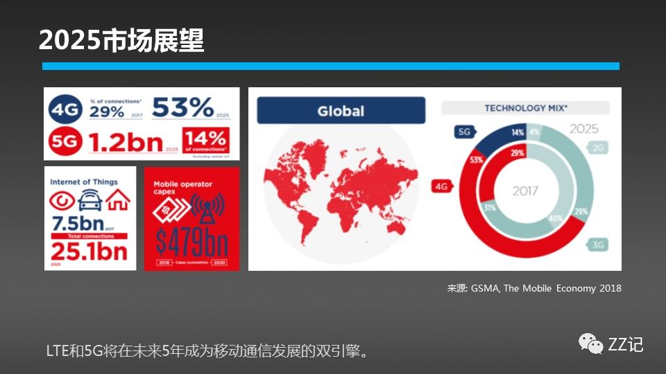 关于全球5G频谱分配状况。我们在世界5G的五大阵营里,日韩欧美全部在商业的频谱部署,在2018年下半年我们发现一个比较明显的变化,就是美国、欧洲1G以下的商业频谱开始发布,欧洲和美国形成一个三位一体的部署,就是1G以下、1~6G以及6G以上的三段全方位覆盖。