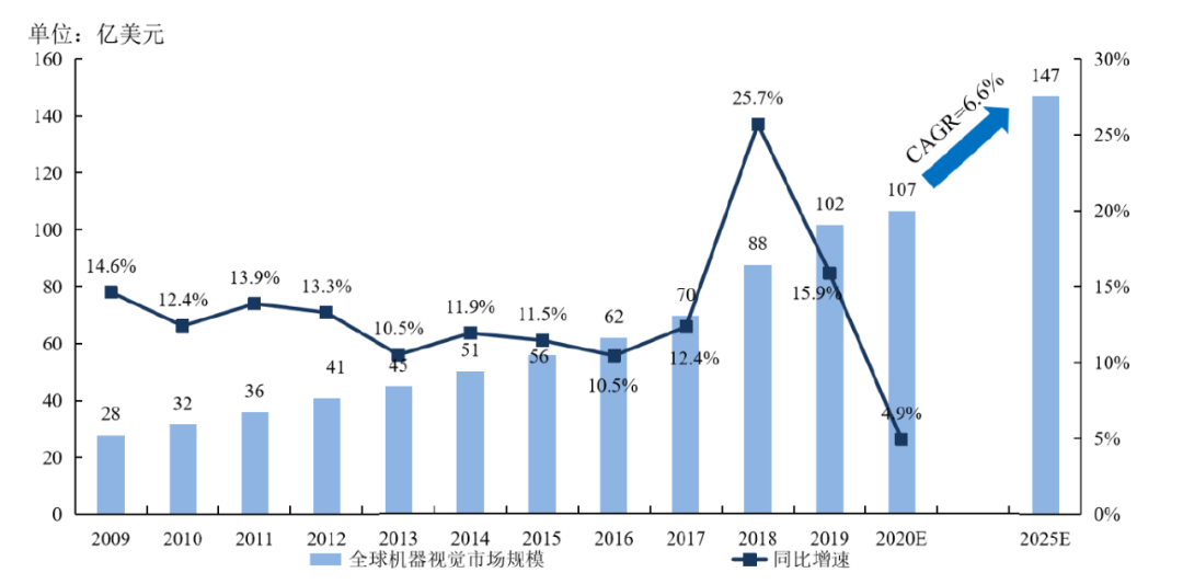 简单的,我们可以把机器视觉产业链可以分为底层开发商(核心零部件和软件提供商)、集成和软件服务商(二次开发),核心零部件及软件又可以再细分为光源、镜头、工业相机、图像采集卡、图像处理软件等。在目前的整个机器视觉系统成本构成中,零部件及软件开发占据了80%的比例,是产业链中绝对的核心环节和价值获取者。
