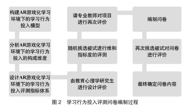 在全球基础教育教学方式不断重组改变的今天,教育游戏作为一种新兴的教学媒体,其寓教于乐的作用受到了相关领域专家、教师以及家长的广泛关注。游戏化学习或基于游戏的学习,尤其是使用移动应用程序和增强现实游戏,已经成为许多教育研究领域的主题。本文首先阐述了学习行为投入的概念和构成维度,并结合体验学习、动机—活动以及自我调节学习理论和现有学习行为投入理论模型,在分析AR游戏化教学环境的基础上,构建面向AR教育游戏的理论模型,并基于其具体的构成维度构建学习行为投入测度量表,根据测度量表设计了学习行为投入评测问卷,通过问卷数据的分析来研究AR游戏化学习环境下的学习行为投入的影响因素,将为后续AR游戏化教学环境下的学习行为投入评测体系的构建以及AR教育游戏支持下的学习者学习行为投入提升路径与策略探索提供理论支撑。