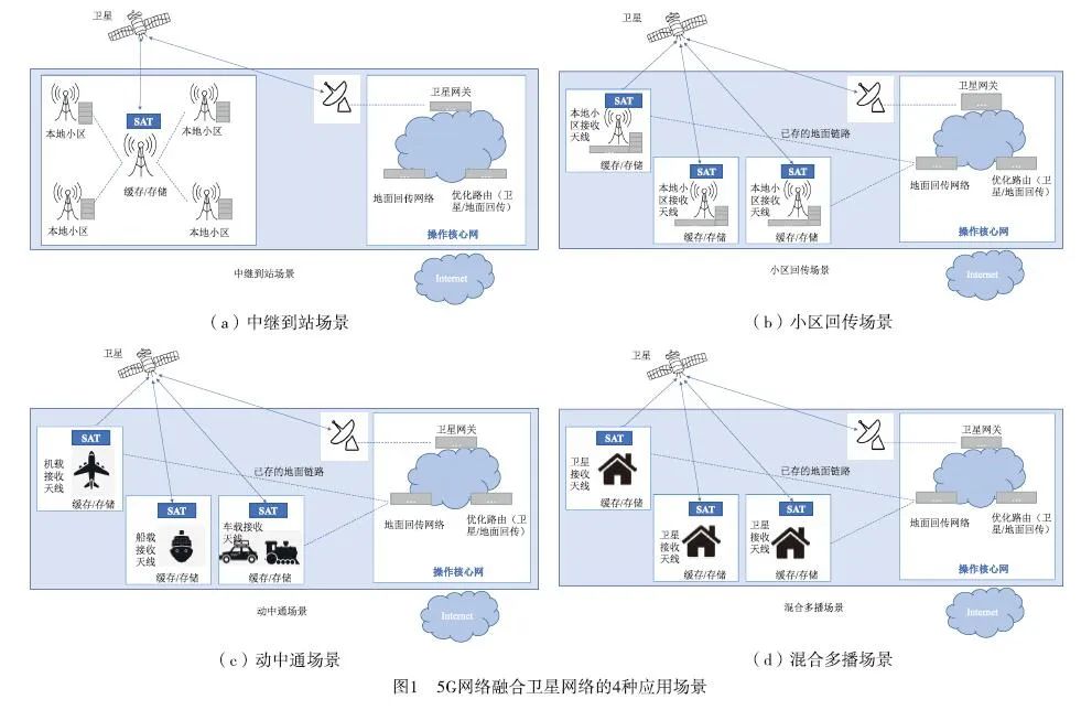 卫星通信定义为以卫星作为中继站进行无线电波发射或转发的一种通信方式,能够实现两个或多个地面站/手持终端以及航天器和地面站之间的通信。相较于传统地面通信,卫星通信能够以较低的开销实现较广的无缝覆盖,同时地理环境不对其产生约束。并且可使用的频谱资源十分丰富,载波频段可从甚高频(Very High Frequency,VHF)到Ka频段,正往更高的频段发展。除此之外,卫星通信在岛屿、沙漠等低业务地区,船舶、飞机等地面网络难以覆盖区域得到了普遍的应用。其提供的移动通信服务具有跨度大、距离远、机动性强、通信方式灵活等优点,是蜂窝移动通信的必要补充和延伸。