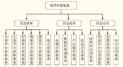 海洋环境是天空、大气、濒海地带、海面、水下与海底等多层空间环境的总称,通常包括海岸地形、海底地形、地貌、底质、障碍物以及海水温度、盐度、密度、海冰、海流、海浪、潮汐、海面风、海雾、气温、气压、重力、磁力、水声传播、噪声、混响等多种海洋要素[1-4],是一个结构复杂、瞬息万变、尚未探明的巨系统,更是国家重要的基础性和战略性资源,军队兵力运用及现代武器系统作战的必备要件,信息化体系作战的重要组成,它们随着科学技术和武器装备的发展而发展,具有很强的时代特征[5]。海洋环境装备是采集获取、处理分析、管理生产与应用服务这些海洋环境信息的物质基础与技术支撑。利用海洋环境装备与技术来探明研究海洋环境特点规律,是认识海洋、透明海洋、开发海洋、经略海洋的前提基础,是促进海洋可持续发展、实现海洋开发战略、维护海洋权益、建设海洋强国的重要保障,是发挥环境信息“倍增器”作用、提升部队战斗力、使武器装备保持优势的关键因素。