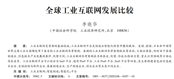 提要:工业互联网是重要的基础设施,工业互联网平台是制造业智能化转型开展的载体。美国、德国、日本和中国等世界主要工业大国都发布了各自的工业互联网参考架构。各国的工业互联网参考架构既具有共性,又相互借鉴,同时由于各国制造业、信息技术产业发展的条件、优势不同,工业互联网参考架构在名称表述、优势、形成与推动力量、重点应用领域等方面也存在差异。工业互联网平台可以划分为laas平台、通用PaaS平台、工业PaaS平台、Saas平台等四类,其主要构建者包括信息技术企业、自动控制与软件企业、装备制造企业、生产制造企业创业企业等五类不同企业。