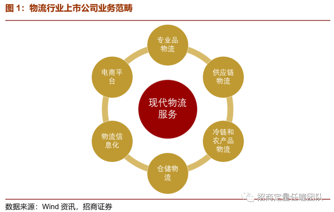 物流作为将原材料、半成品、成品等不同形式物品在不同地域之间进行运送转移的一种服务形式,是维系国家经济正常运转、居民生活正常进行的重要保障。根据官方所给出的定义,物流是指物品从供应地向接收地的实体流动过程中,根据实际需要,将运输、储存、装卸搬运、包装、流通加工、配送、信息处理等功能有机结合起来实现用户要求的过程。而随着经济发展的持续进步以及社会生产生活需求的推陈出新,物流服务所涉及的形式和范畴不断丰富,新的形式或业态层出不穷。目前在A股市场上市交易的物流行业公司的业务范畴覆盖专业品物流、供应链物流、冷链和农产品物流、仓储服务、物流信息化和电商平台等不同形式的现代物流服务。