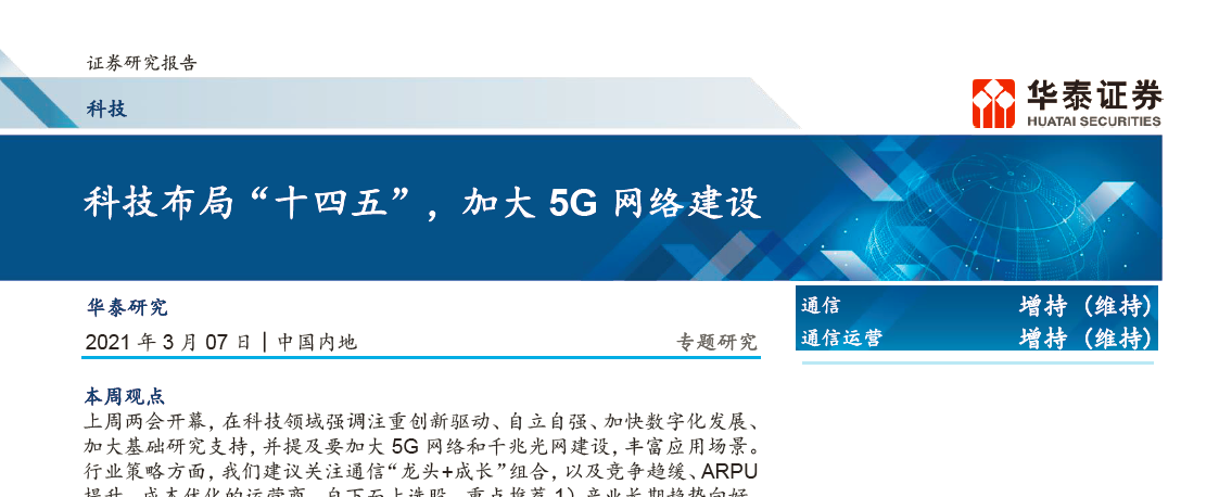 为了释放5G等新型基础设施建设对经济增长的拉动作用,中央政治局常务委员会3月4日召开会议,指出“要加快5G网络、数据中心等新型基础设施建设进度”。中央各部委多次会议聚焦5G网络建设,全国各级政府也在积极响应,密集出台行动计划、实施方案、指导意见等政策文件,为5G发展营造了良好的政策环境,积极推进5G网络建设、应用示范和产业发展。