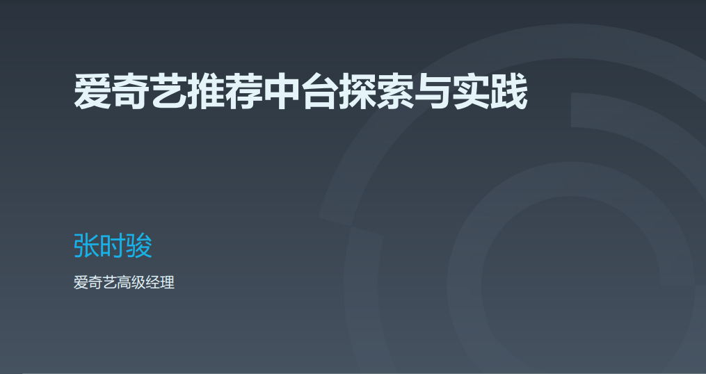 毕业于上海交通大学计算机系,现任爱奇艺高级技术经理一职,爱奇艺推荐中台的总架构师。在爱奇艺从事推荐引擎架构和开发工作,近几年专注于分布式高并发线上引擎的架构,搭建了热点信息流、小视频信息流等推荐引擎。目前正在致力于爱奇艺推荐中台的建设,旨在帮助公司内各业务团队能够以低成本、高效率、高产出的方式获取一套完整的推荐服务及其周边配套设施,快速实现业务目标。